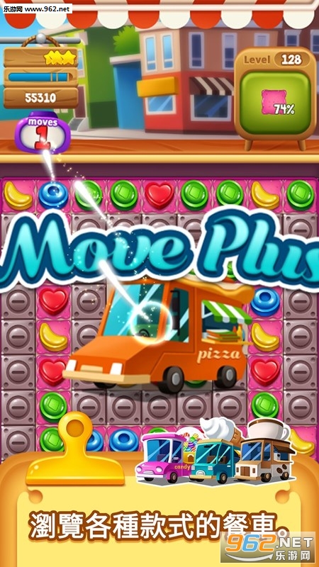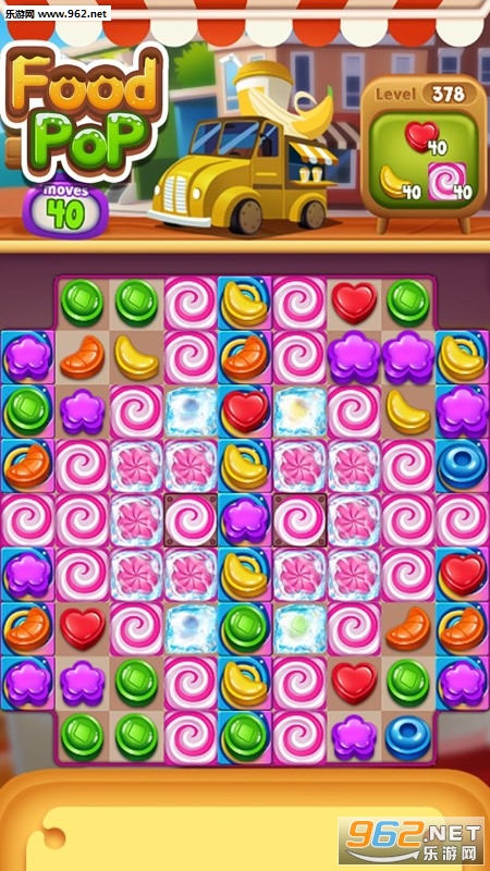 将 3 个同样类型的糖果排成一列,即可收集食物糖果
