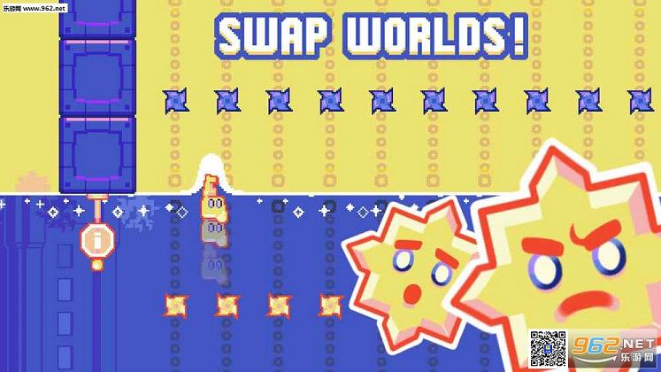 《交换跳跃》是由Nitrome出品的一款益智休闲游戏。在游戏中,主角因为一种神秘的力量被传送到了另一个世界,他可以穿梭于重力与反重力两个世界,玩家通过收获的宝石可以用来购买存盘点,否则死了就只能从头来,游戏采用滑动操作,略微不顺手。