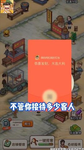 我的网红街红包版是一款非常好玩有趣的模拟经营类的手机游戏,游戏中为玩家们打造了一个有着丰富美食的网红美食街,这里有着你的一个摊位,玩家需要做的就是将这个小吃摊经营好,获取收益,同时还会有随机的红包奖励可以拿哦。