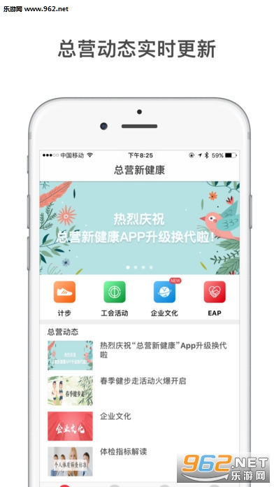 总营新健康App,旨在深化总营企业文化建设,推动“网上工会”进程,提高工会工作效率,,进一步完善健步走、新闻宣传、活动通知、健康管理积分福利等功能,为员工提供更便利、更贴心的工会服务,营造健康绿色生活方式,打造健康向上的企业文化氛围。