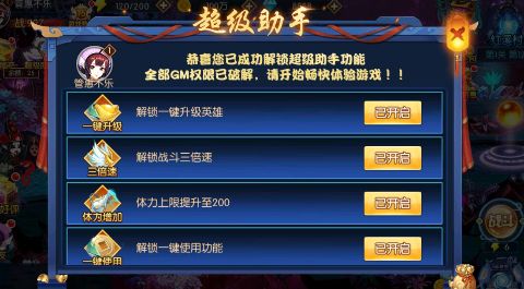 ★GM专属超级助手功能,高速战斗,自动闯关,一键挂机释放双手,畅享便利功能!