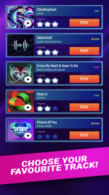 1、众多关卡等待你的挑战,并且难度会逐渐提升,伴随着音乐的节奏完成刺激比拼,用你的激情去点燃它