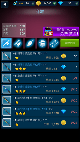 1、多种不同的钓鱼装备,不同的装备有着不同的特点,而大家游戏里要合理的进行切换使用
