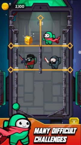 救救狼人杀官方版是一款非常有趣的解谜闯关游戏,在游戏中玩家们需要通过拔针来解救被困的同伴,在拔针之前我们需要分析自己的动作,并非常小心地通过每个关卡,但是想要完美的过关,游戏中的宝藏也是不能够放过的,这将使游戏更具挑战性,多出的金币可以购买各种皮肤,让挑战更加有趣哦。