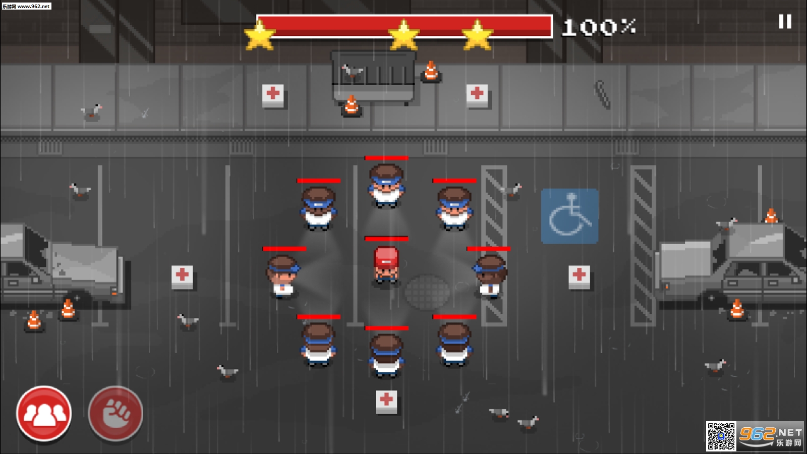 玩家在游戏中将会带领身着红色服装的团队成员,从蓝色团队的手中守护自己的地盘。玩家要作好完美的作战计划,最大效率的让红色阵营的成员消灭敌方。玩家可以让自己的手下使用拳头进行攻击,或者是捡取武器保护自己。游戏中共有36个关卡,根据玩家的表现,玩家在每个关卡之中可以获得最多三颗星星。