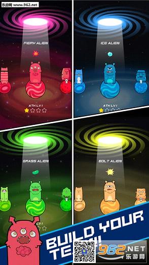 在解锁新角色方面主要是看脸,也就是不少人都很熟悉的抽扭蛋。如果抽到重复角色也没关系,二号机三号机N号机都可以用来喂给一号机让其升级,级别越高攻击越高。并且要是能凑足一组(4只)属于同种族的外星人,还能激活它们的被动技能。