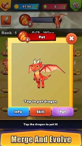 合并龙大师最新版是一款合成战斗类型的游戏,游戏中玩家们可以组建一支全面的团队来进行战斗,不断地学习一些技巧,在游戏中指挥自己的火龙来进行战斗,还可以通过合并来解锁全新的龙,游戏中玩家们可以根据阵容的转换配合获得更好的冒险,高清的游戏画面,还有很多的格斗场景可以解锁哦。