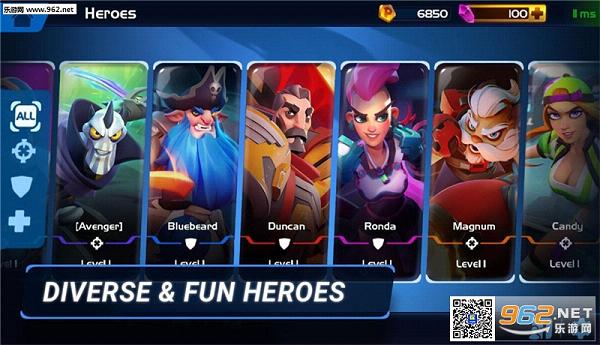 你可以玩单机PvP和合作PvP游戏、与机器人对战、完成任务并在战场上解锁全新领军者(我们称之为“英雄”)。