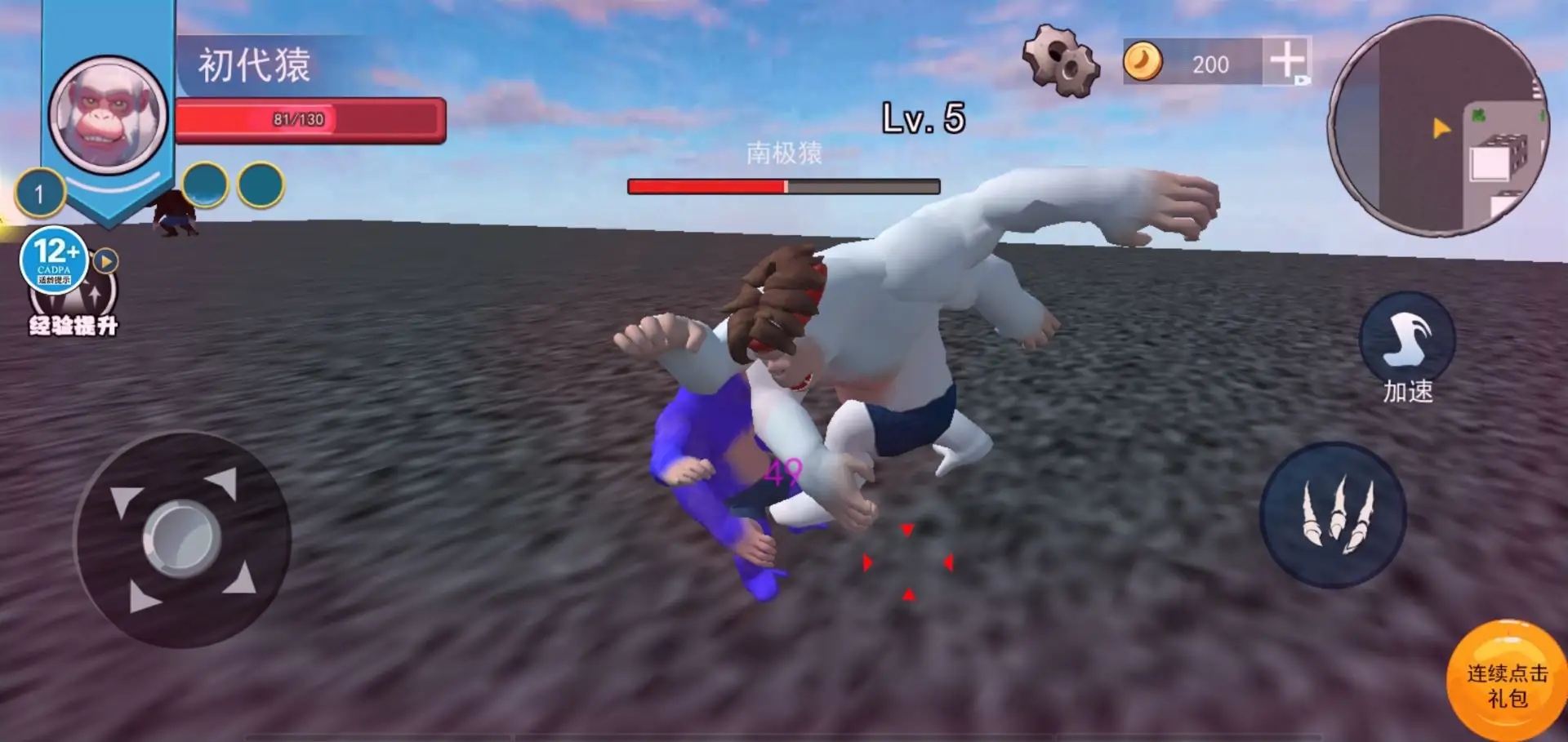 广告里的吞噬进化游戏,竟然真的存在!《猩猩狒狒乱斗》是一款充满乐趣与挑战的猿猴吞噬进化游戏。在这个神秘而广阔的原始世界中,玩家将扮演一只弱小的猿猴,通过不断吞噬其他生物、获取能量和资源,逐步进化成为强大的猩猩狒狒之王。