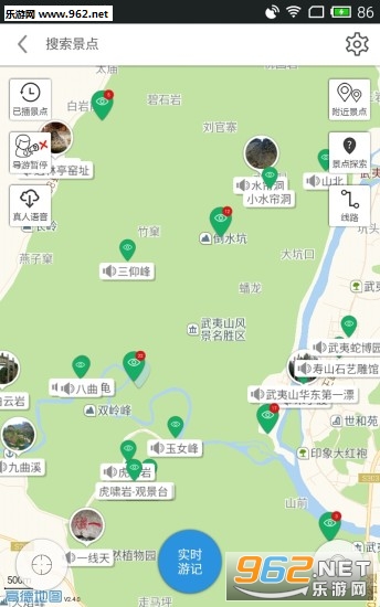 《武夷山导游app》是一款专门为想要去武夷山旅行必备软件,软件把所有武夷山的景点都以详细的语音以及图文形式进行展示,不仅让你在景区随时都不会迷路找到正确的线路,还能更加深入的进行游览。有需求的朋友们就快来下载吧!