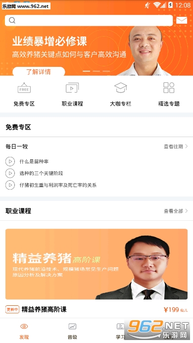 以畜牧业为核心的一款学习软件,权威专家进行授课,课程非常丰富,支持进行试听,给用户提供最科学权威的指导,提升自己的专业能力。