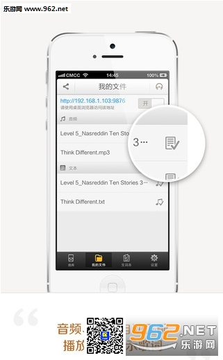 朗易复读机安卓版是一款英语点读软件!使用起来非常简单,用户可以直接上传音频文件和同名课文文件,或将MP3通过同步到您的曲库内,就可以进行学习了。不但可以选定范围,反复听读,还可以边听边看,查询生词。