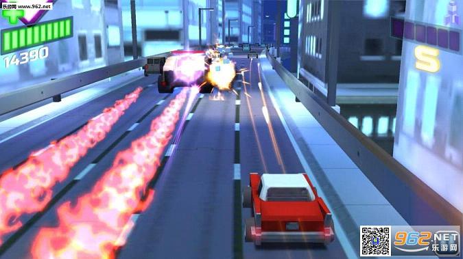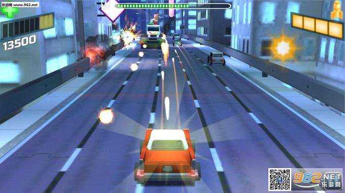 游戏中玩家飞驰在公路上,用车头发出的子弹消灭敌人。这是一款融合了跑酷与射击元素的游戏。在躲避子弹的同时,还要精确地打击敌人。