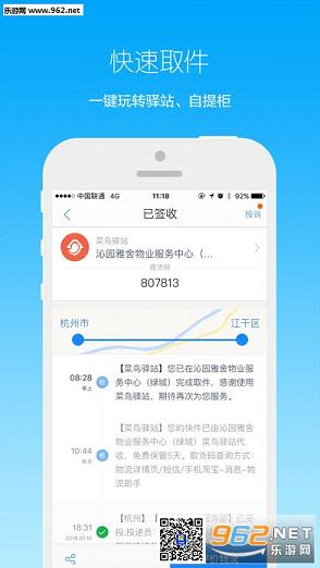菜鸟驿站:网购包裹免费代收,包裹全程跟踪、到站点自动提醒,取货操作简便;同时驿站还提供便捷的寄件服务。