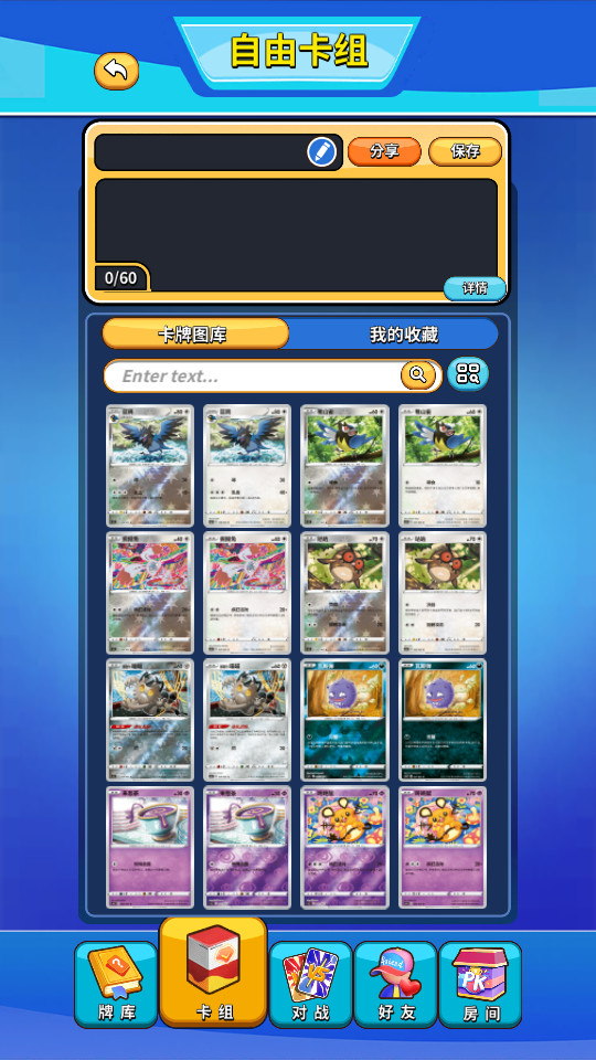 《卡豆对战平台》是一款非常有趣的对战游戏平台,主要以卡牌对战为核心玩法。在游戏中,玩家扮演一名宠物驯兽师的角色,可以收集、培养并升级各种宝可梦卡牌,然后与其他玩家进行对战。拥有丰富的图库和卡组介绍,玩家可以根据自己的喜好和策略选择卡牌进行对战。无论是新手还是资深玩家,都能在这款游戏中找到乐趣和挑战。还提供了深入的训练系统,玩家可以通过训练来提高卡牌的等级、学习新技能和进化,让卡牌变得更加强大。同时,游戏还提供了激烈的对战系统,玩家可以与其他玩家进行竞技,也可以与游戏内的好友进行切磋,通过合理运用卡牌技能和策略来赢得胜利。