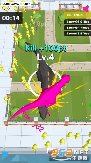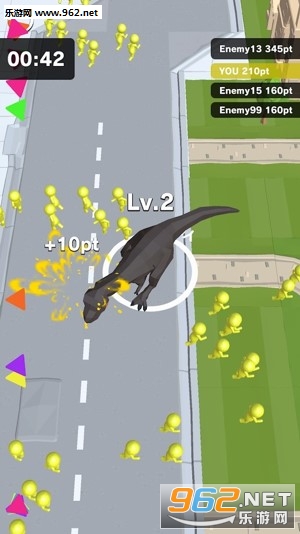 1、真实还原的3D城市环境,控制恐龙进行吞噬对战。