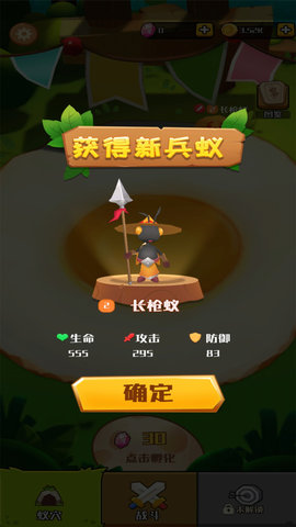3.建造蚂蚁军团,加强属性速度战力,对抗一个个大型动物BOSS,建立你的蚂蚁帝国,
