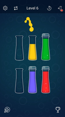 一款非常不错的手机休闲试管液体挑战类游戏,水一样的液体,不同的颜色,玩家要做的就是兑入对应颜色的液体,使得试管中的颜色排列一致!