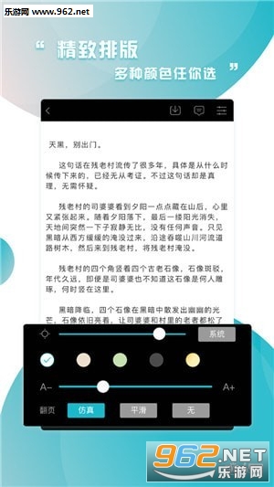 护眼模式、夜间模式、亮度自适应、字体大小、多样独特的阅读页主题,每一个阅读姿势都舒服