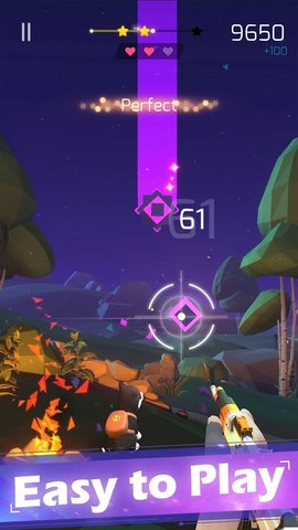 节奏射击内购版是一款音乐节奏类的射击游戏,在这款游戏中,玩家将会随着音乐的节奏滑动手中的枪械射击上面掉落的宝石,随着宝石掉落的节奏移动自己滑动屏幕的手指,游戏采用卡通唯美画风,背景众多,更有海量音乐库等着玩家挑战,给玩家带来不一样的游戏乐趣。