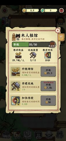 2、学员历练探索,发现各种宝物提升收入和武馆声望