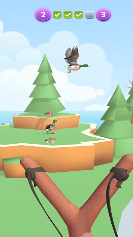 玩家在打鸭子游戏3D版中需要利用手中的弹弓射击远处的鸭子和鸟类,击中的次数越多则能够获得更高的游戏积分,解锁新的游戏道具和关卡。打鸭子3D版手游以第一视角进行模拟,给玩家带来不一样的射击体验,打鸭子游戏3D版难度随着游戏的继续不断增加。