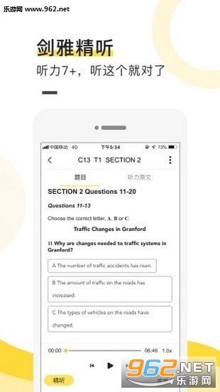 剑桥雅思听力跟读功能,精听跟读,还有翻译和变速,给你最流畅的听说体验。