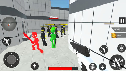 火柴人联合淘汰赛是一款模拟射击行动的火柴人枪战游戏,玩家在游戏中扮演红色方的精英火柴人,对抗敌方火柴人。游戏开始时玩家自带一把冲锋枪,可以通过在战场上拾取各种装备道具加强自己的战斗力和防御力。游戏操作十分简单,只需冲锋突突突即可,有喜欢的玩家们抓紧时间来本站下载体验!