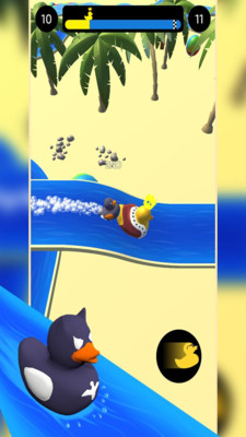 众所周知鸭子虽然是陆地动物,但是鸭掌上面有着脚蹼,羽毛非常的油腻所以鸭子都能够非常轻松的浮在水面上,而在这款游戏中玩家所需要做的就是控制自己的鸭子顺着河道的水流向前冲,只要能够获得冠军,其余的东西都不重要。