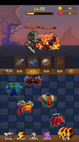 1、挂机战斗提高骑士的能力,放置竞技获得超强的属性,骑士队伍去探索无尽的地下城