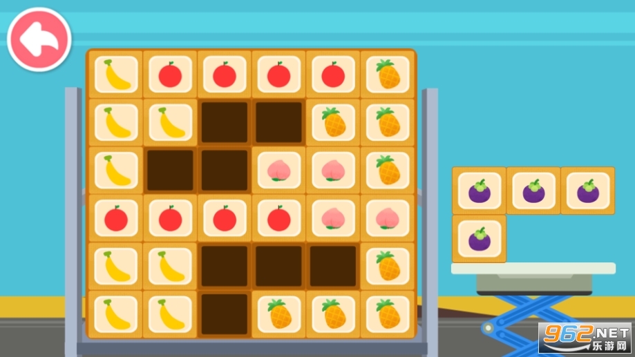 补货小技巧:只关注眼前的小箱子可不行,要从整体来观察哦!组合后的货箱是“L”型。宝宝想想看,这几箱苹果可以堆在哪里呢?(逻辑训练)