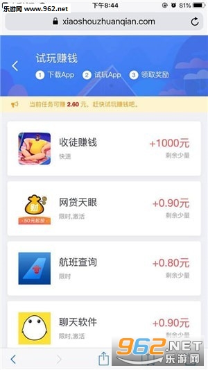 新用户加入就送1元现金奖励,小手试玩每天会更新超多APP试玩赚钱任务,