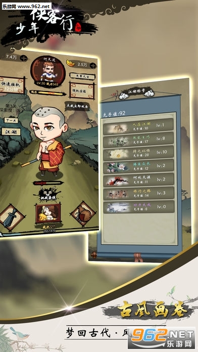 《少年侠客行安卓版》这是一款武侠题材的放置RPG手游。玩家可以选择不同的门派,通过拜师学习武功,也可以尝试运用不同的战斗风格,挑战各大武林高手,成为独步武林的大侠。游戏上手容易,还支持离线挂机功能,感兴趣的玩家可以下载体验!