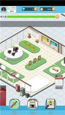 1、经营:玩家可以从简单的操作中获得店铺升级、人员升级、货品升级的乐趣,不断壮大自己连锁店铺的品质和数量,员工在招聘、培训、激励的过程中,形成技能最强,合作最默契的销售团队。