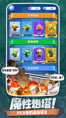 2、特色炮塔轮番上阵,功能各异(机枪、狙击、电磁、瘟疫、冰冻、核弹等每种炮塔效果独特,各有奇效)