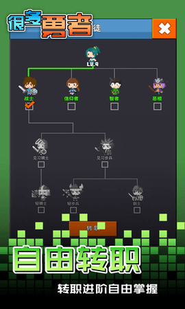 很多勇者官方版是一款角色扮演类的游戏,游戏采用了经典的像素风格,全新的玩法,选择不同的英雄角色组成你的队伍进行冒险,多种升级路线分支,选择不同的武器装备,挑战强力的关卡副本,并且每个角色到达瓶颈都可以进行转职,让角色更强大,喜欢的朋友快来下载体验吧。