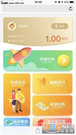 2、新用户注册即送1元红包奖励,新版本更新后邀请好友做任务首次得1元奖励
