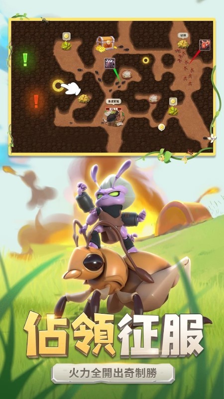 不想将游戏玩成上班?在这里勤劳的蚂蚁为你摆平一切,你只需要专注於领地的征战,巢穴的发展就交给我们,解放更多的时间,将精力花在体验游戏的趣味上。