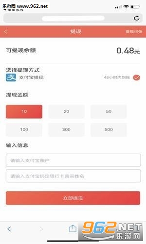3、最低10元即可申请提现打款