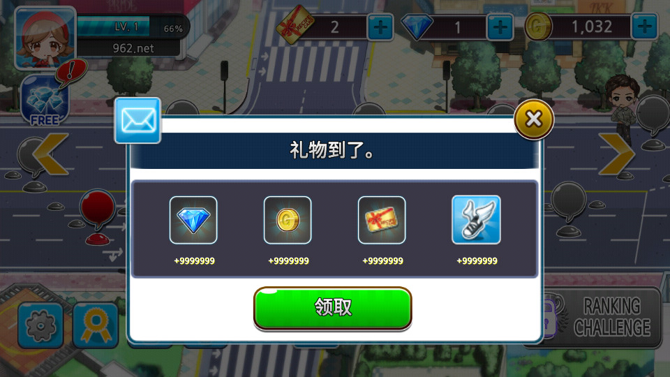 进入游戏点击中间下方消息,即可领取大量金币、钻石、卡片、鞋子