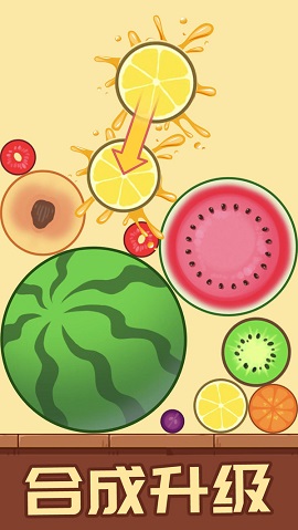 很可爱很小清新的游戏画风打造而成,玩法还非常休闲益智。通过让两个相同的水果碰撞,可以得分并且会得到新的体积较大的水果,相当有趣好玩,最后顺利合成大西瓜,你的分数也会更高的!