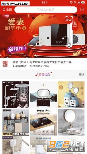 《白沙厨卫app》白沙厨卫app是一款专注于厨卫用品销售的网络商城。白沙厨卫app为用户提供了海量的优质的厨卫品牌,一站式的购物体验受到众多好评,还在头疼厨卫不知在哪买的你快来下载看看吧!