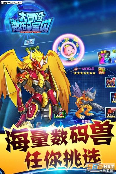 2016年度最火爆的数码宝贝题材手游《数码宝贝大冒险》强势来袭! 太一、阿和、亚古兽、加布兽……熟悉的身影悉数登场,满满的情怀让你重回童年!勇气、友情、爱心、诚实、纯真、知识、希望、光明! 进化徽章光芒闪耀,数码冒险再度启航! 无限大的梦想在掌中重现,被选召的孩子们,开始冒险吧!