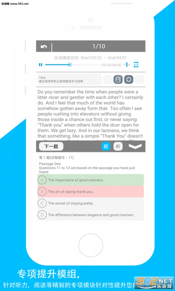 专项模组:针对听力、阅读等专项版块,精心定制专项提升模组,助您针对性提升英语能力