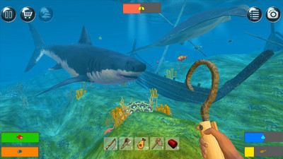 在你周围有致命的鲨鱼和海怪,你现在的目标是找到水和食物,并建造一个筏子通过
