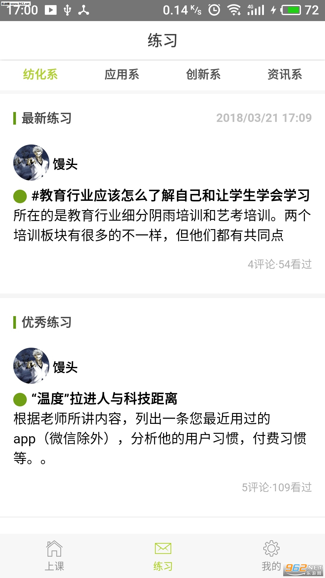 上课栏目分四大认知系:纺化系、应用系、创新系、资讯系;每个课程有对应的练习题,看完、听完课程,可以提出问题,对应的提问会作出专业的回答。