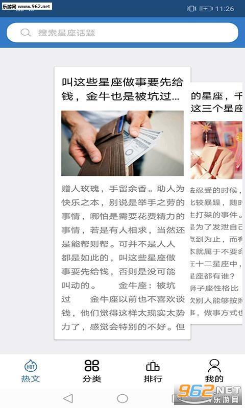 热文页面为用户带来最新的星座文章分享