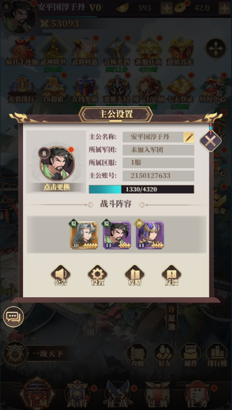 丰富福利活动:游戏提供了多种福利活动,如疯狂十连抽、武神降临等,让你在游戏中轻松获得珍稀道具和武将。