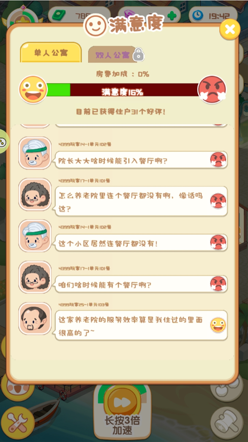 休闲经营:游戏以轻松愉快的氛围为主,让玩家在经营养老院的同时享受休闲时光。