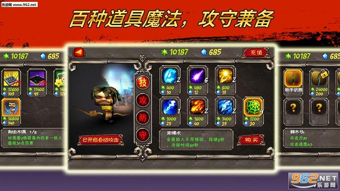 陷阱升级多变的战法,绚烂的大型魔法,或可爱或华丽或诡异的装备武器造型,各种奇思妙想的道具,火爆的战斗场面,让玩家全方位体验不同的新式塔防策略。